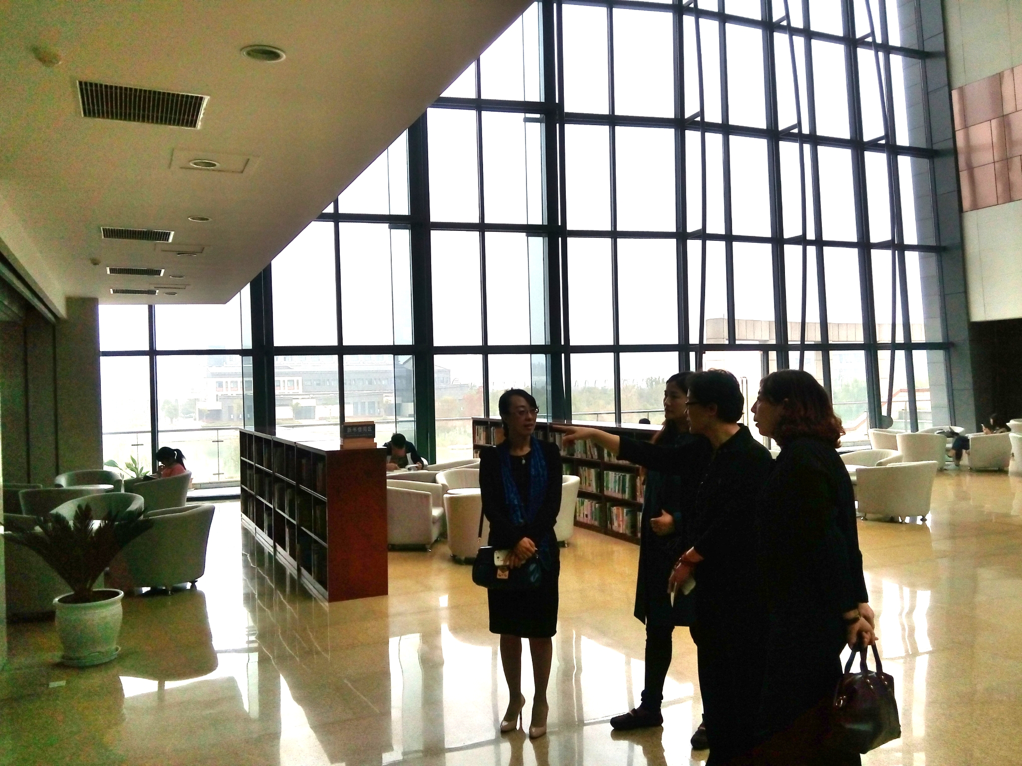 开云电子馆一行受到徐州工程学院开云电子馆领导的热烈欢迎,在彭雪勤馆长的陪同下,参观了徐州工程学院新校区逸夫开云电子馆,对徐州工程学院开云电子馆的整体建设及管理服务留下了深刻印象。彭馆长详细介绍了新馆建设理念、管理模式、馆舍布局、资源及配置、业务流程及开展服务类型等方面内容。我们就相关的问题咨询了彭馆长,彭馆长都一一作了解答。
